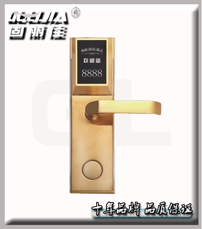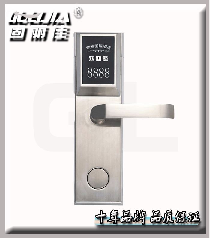 肇慶永和賓館從08年就開始選擇我們固麗佳的插卡門鎖,此次重新裝修升級(jí),把原來(lái)老款的插卡門鎖換成新款的智能感應(yīng)門鎖,再次選擇了我們固麗佳!定制了商務(wù)型智能酒店門鎖GLJ-815此款門鎖可以定制專屬的酒店面板LOGO以及更換不銹鋼個(gè)性把手等!