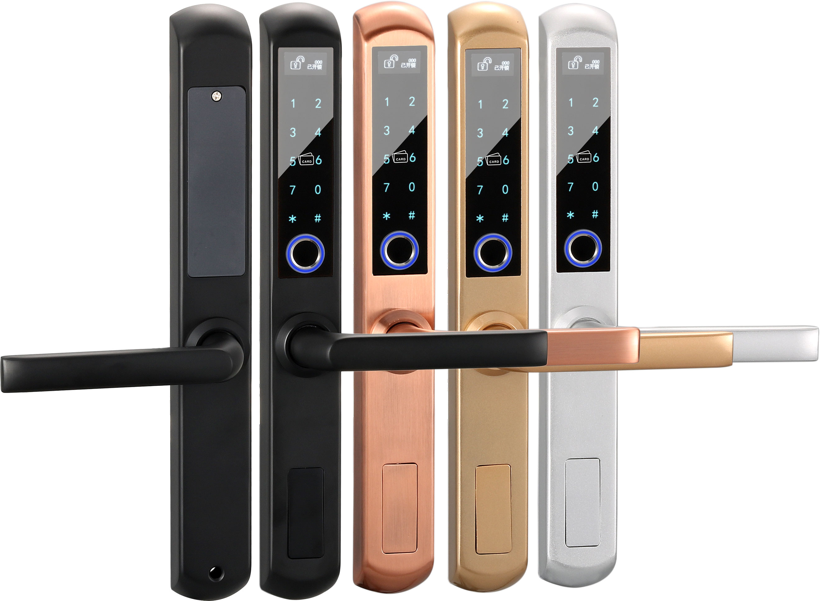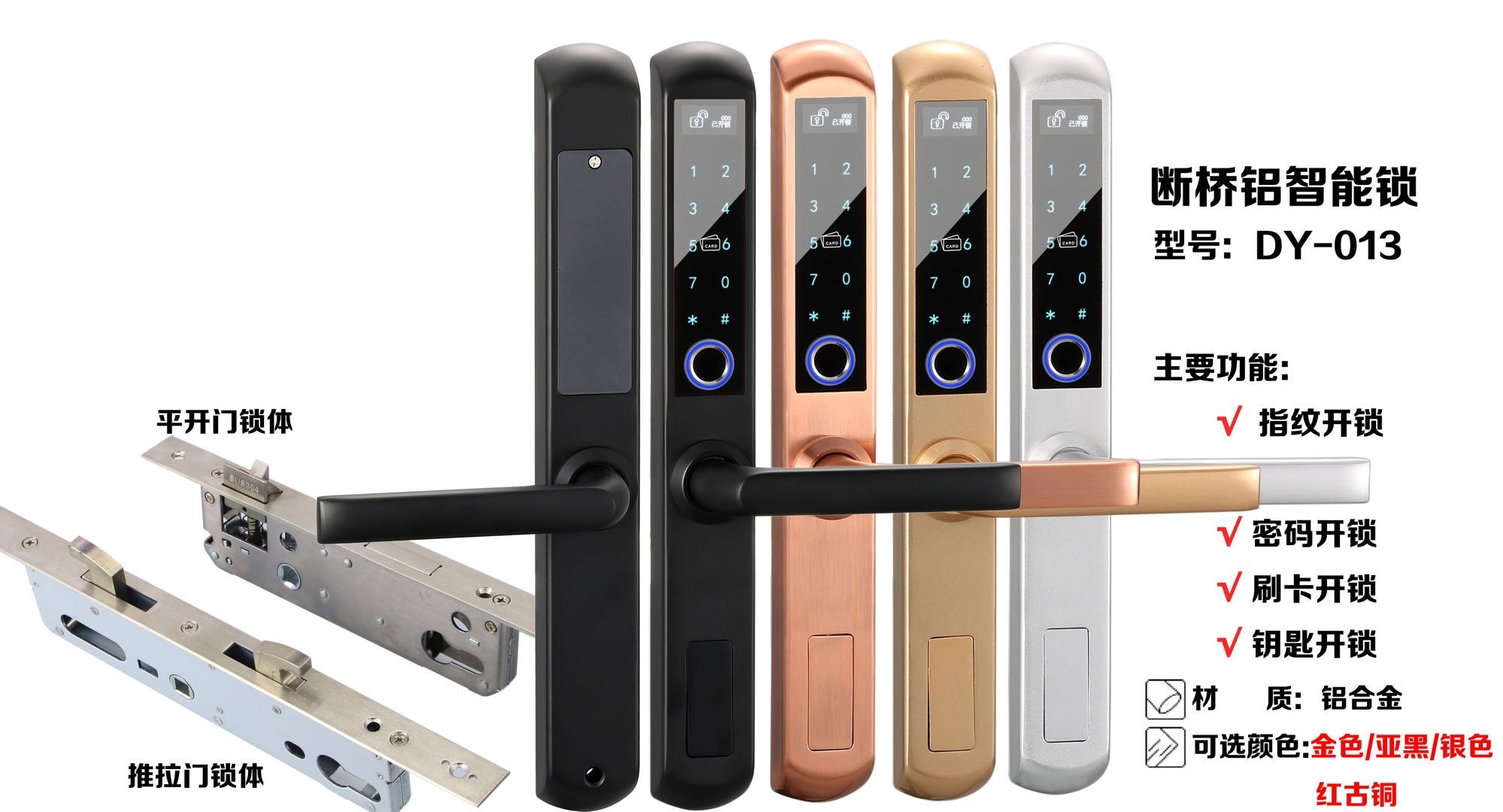功能:指紋開鎖,密碼開鎖,卡片開鎖,機械鑰匙